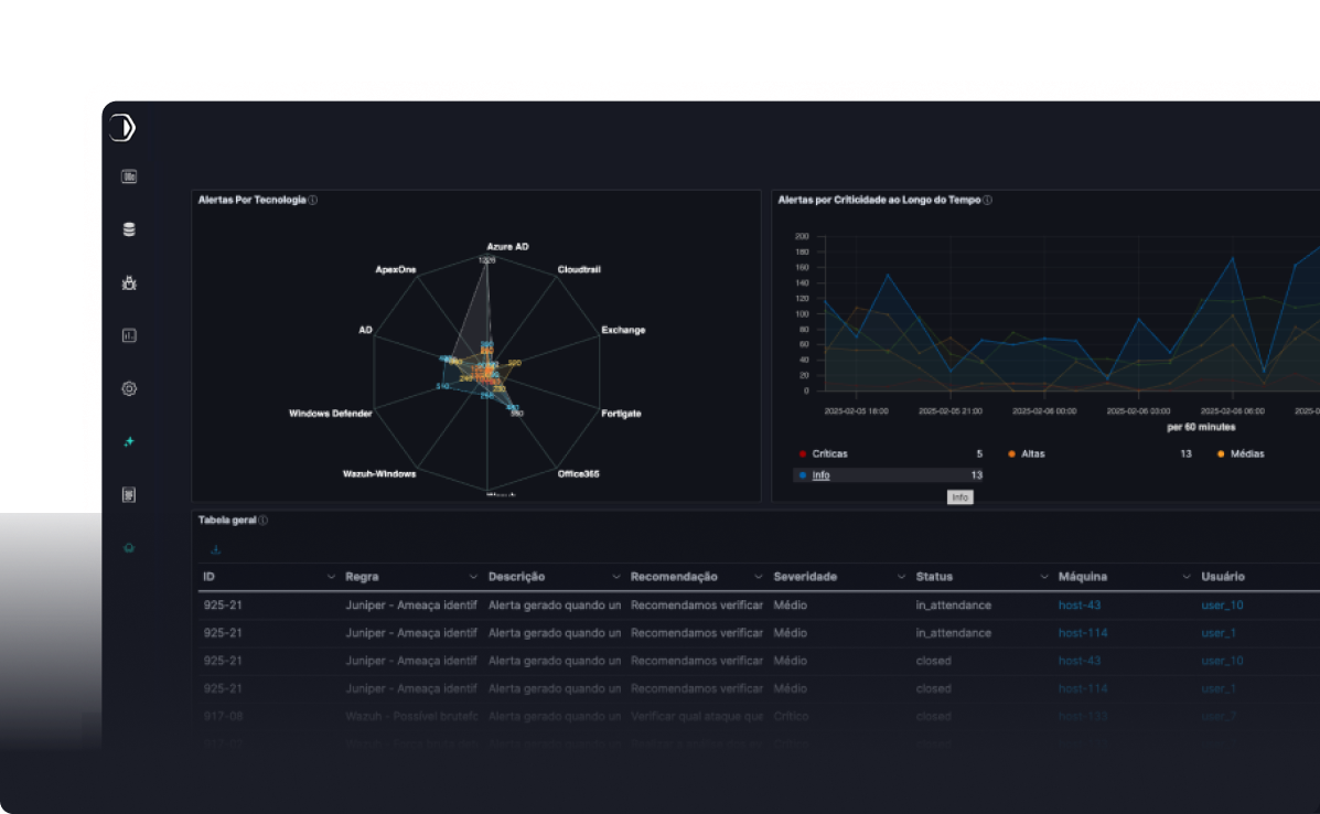 - Adaptação personalizada: o Clavis SIEM pode ser ajustado conforme as necessidades específicas de cada cliente, proporcionando resultados concretos de forma personalizada.