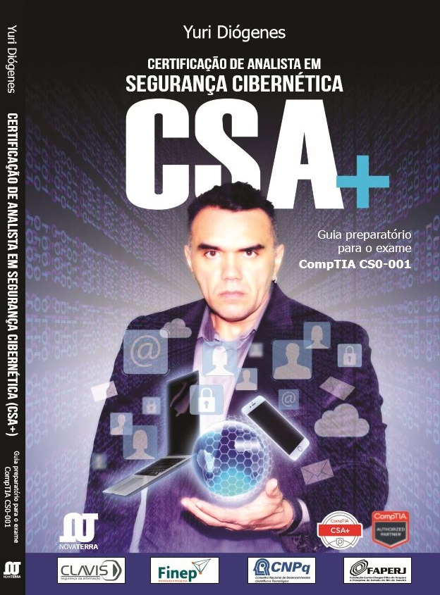 Escrito por Yuri Diogenes, o livro é apresentado pela Editora Novaterra e Clavis, e tem como objetivo preparar o leitor para o exame de certificação CSA+ CS0-001, cobrindo os tópicos requisitados na prova. Apesar do livro ter como foco a preparação para a certificação CompTIA CSA+, ele também poderá ser usado como referência para assuntos relacionados com segurança cibernética.